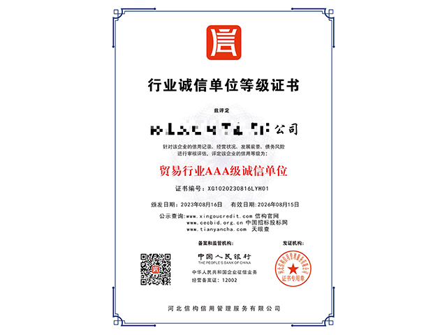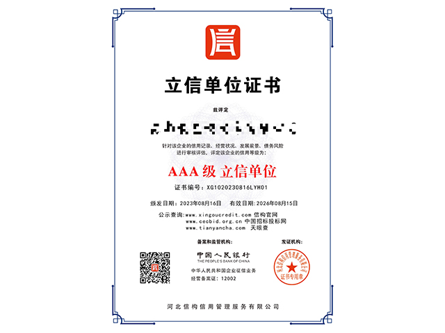 成功為超過56000個(gè)客戶完成AAA企業(yè)信用等級(jí)認(rèn)證